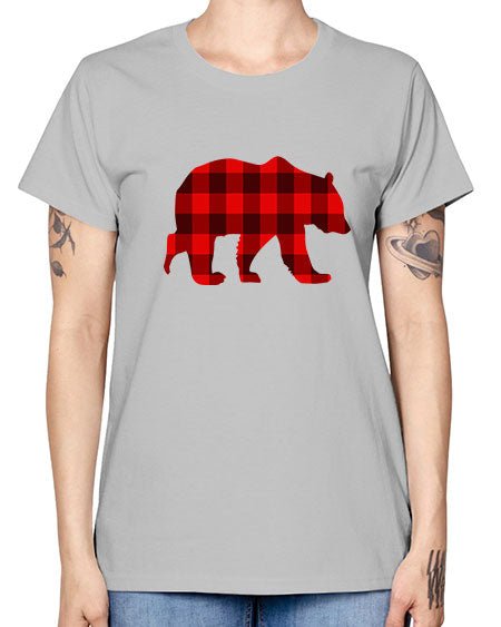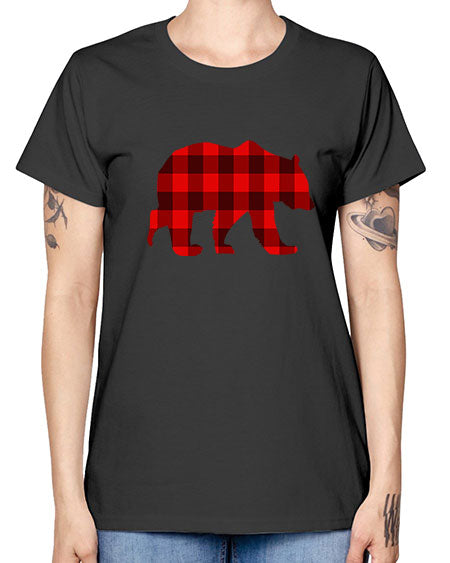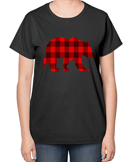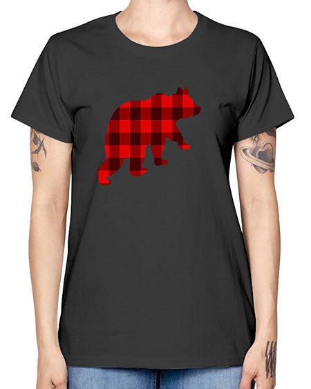plaid bear 229# - bears - animals- Ladies T-Shirt