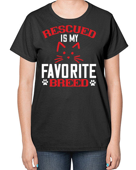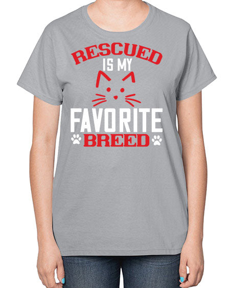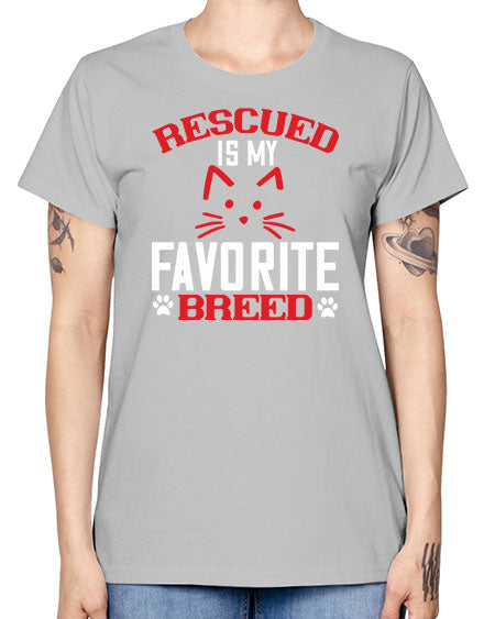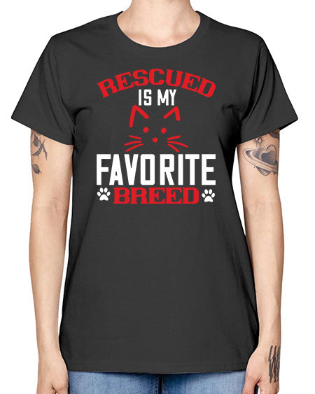 rescued is my favorite breed Style 114# - cats- Ladies T-Shirt