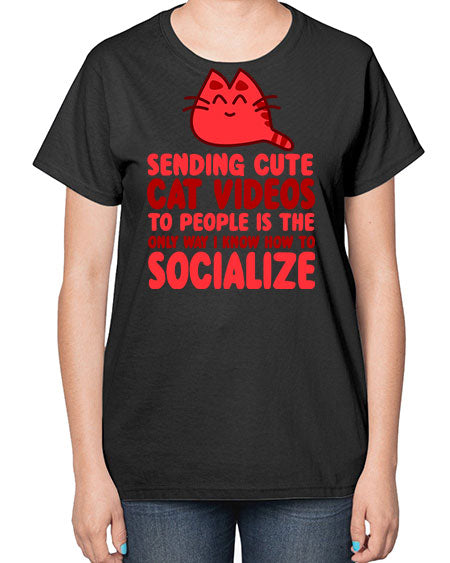 sending cute cat videos to people is the only way i know how to socialize - cats- Ladies T-Shirt