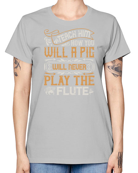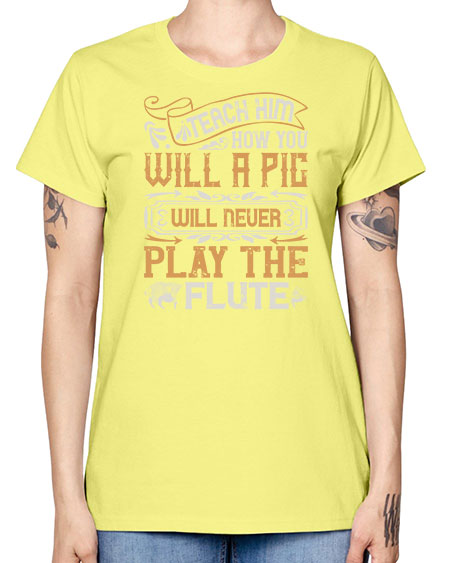 Teach him how you will a pig will never play the flute Style 28# - pig- Ladies T-Shirt