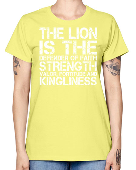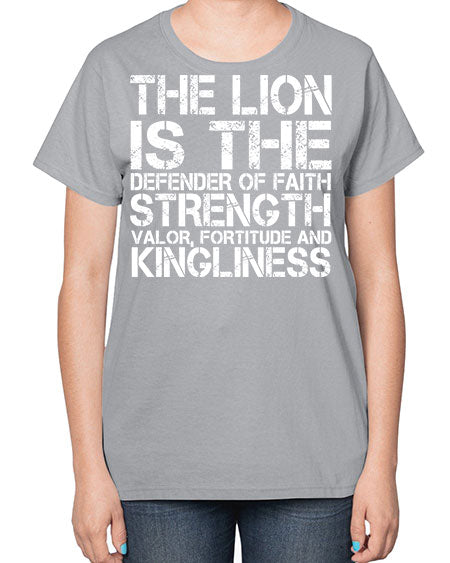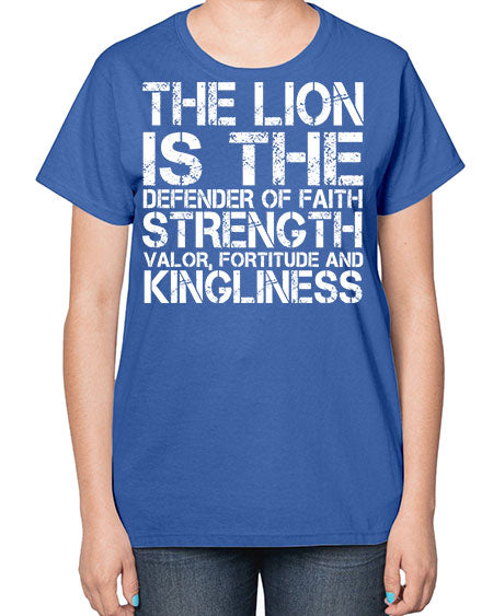 the lion is the defender of faith strength valor - lion- Ladies T-Shirt
