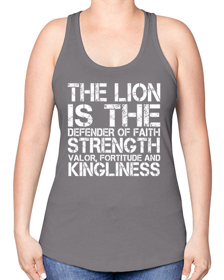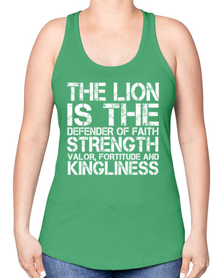the lion is the defender of faith strength valor - lion -Racerback Tank