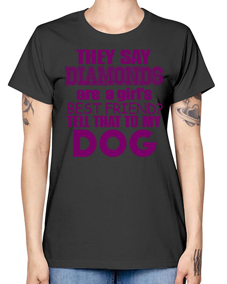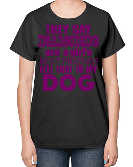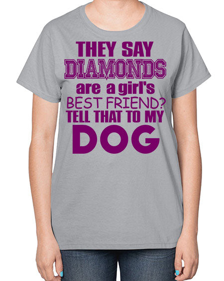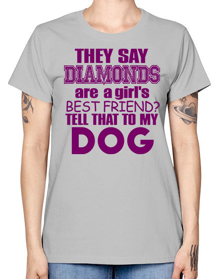 they say diamonds are a girls bestfriend tell that to my dog - dogs- Ladies T-Shirt
