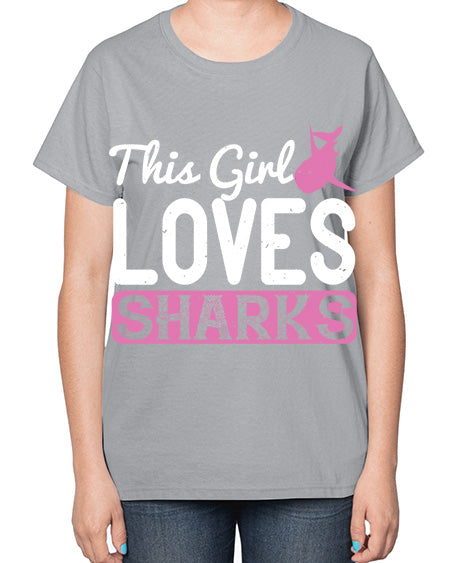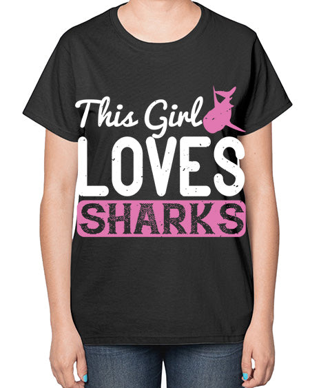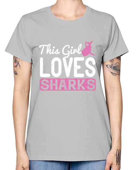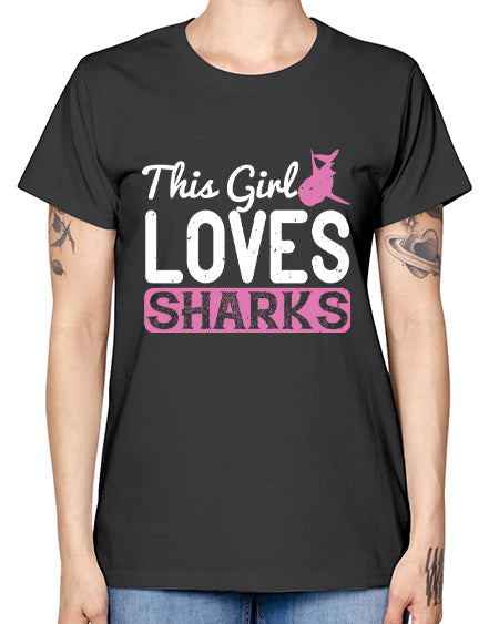 this girl loves sharks Style 12# - shark-fish- Ladies T-Shirt