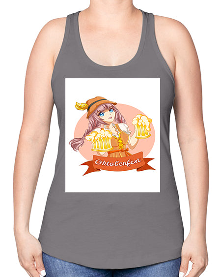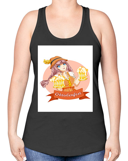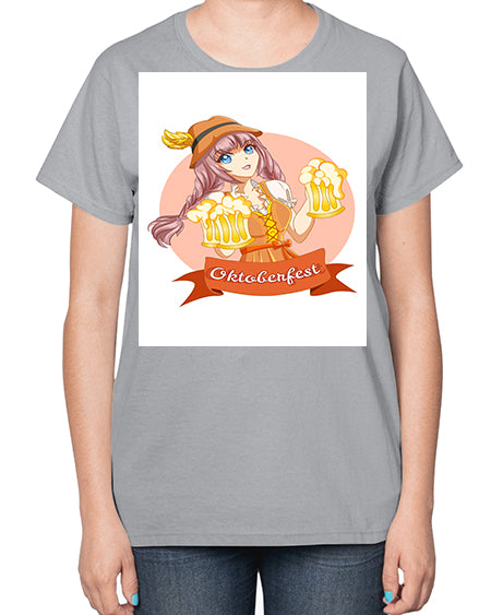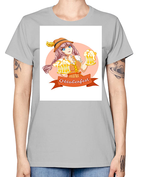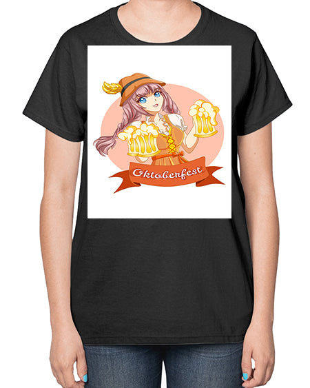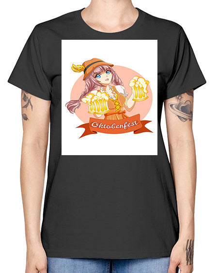 Cute and happy woman celebrating oktoberfest with beer 177# - anime- Ladies T-Shirt