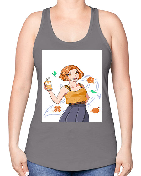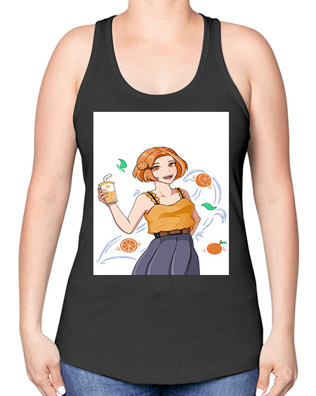 cute anime summer girl with orange juice28# - anime -Racerback Tank