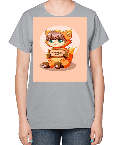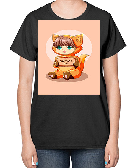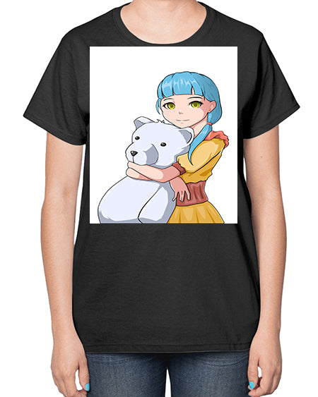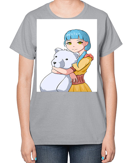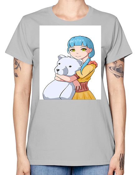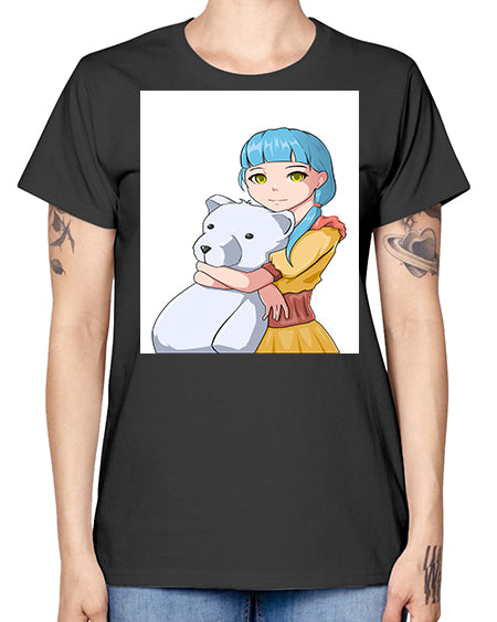 Cute girl with bear doll 26# - anime- Ladies T-Shirt