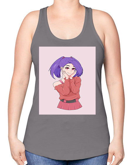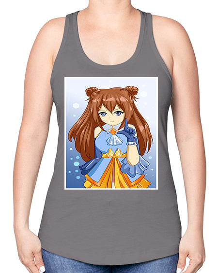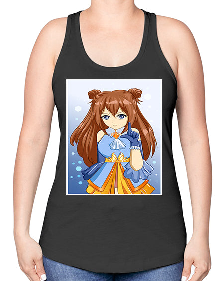 Cute little beautiful girl blue gold clothes cartoon 171# - anime -Racerback Tank