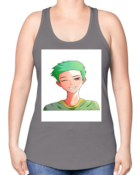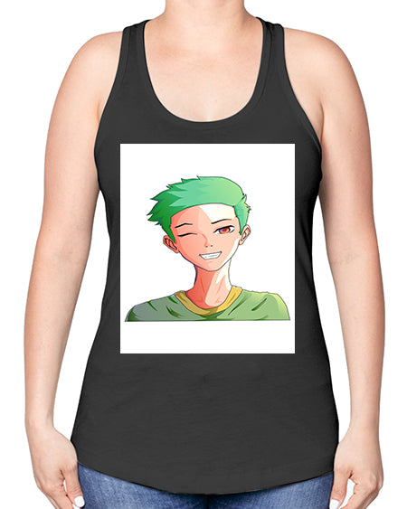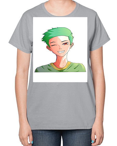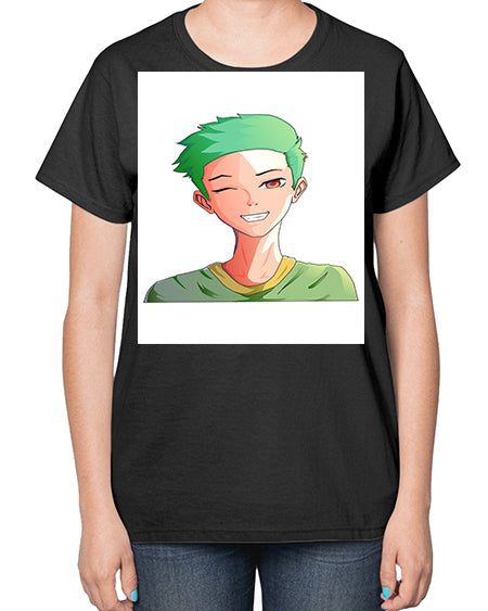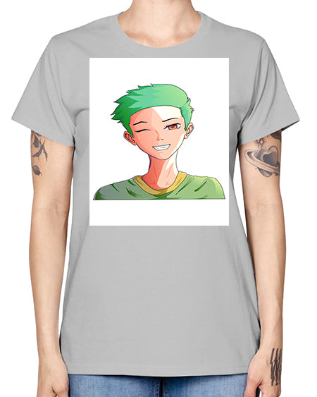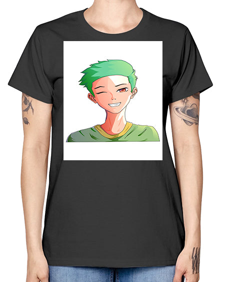Handsome boy green hair wearing green shirt 35# - anime- Ladies T-Shirt