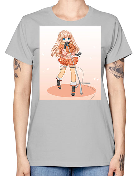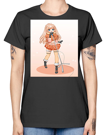 Happy and beautiful singer woman with microphone 160# - anime - Missy T-Shirt