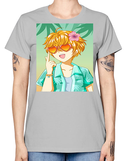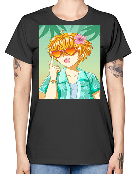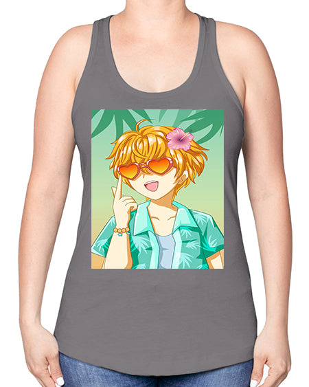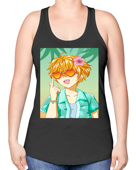 Happy and cute boy with glasses in beach in the summer 180# - anime -Racerback Tank