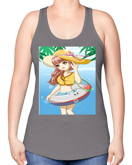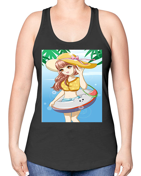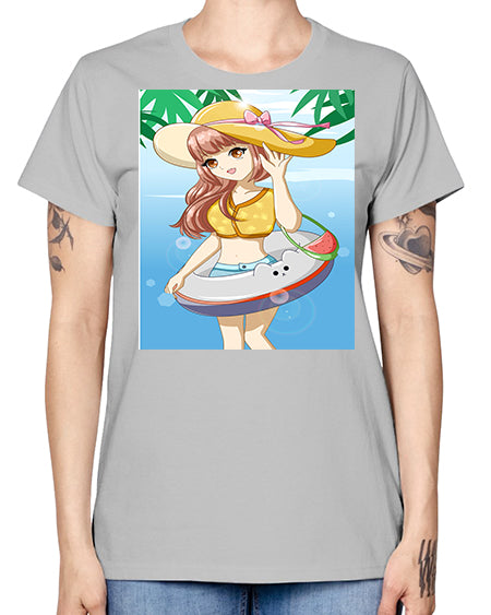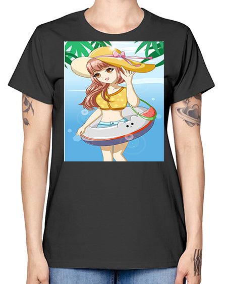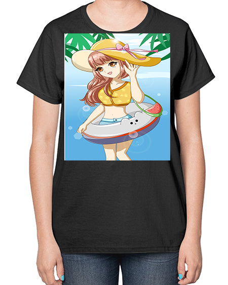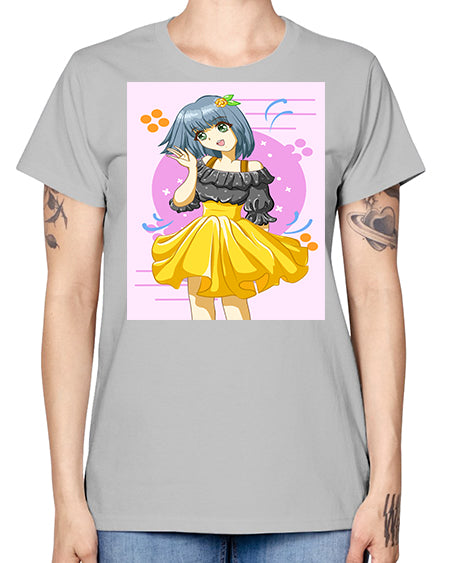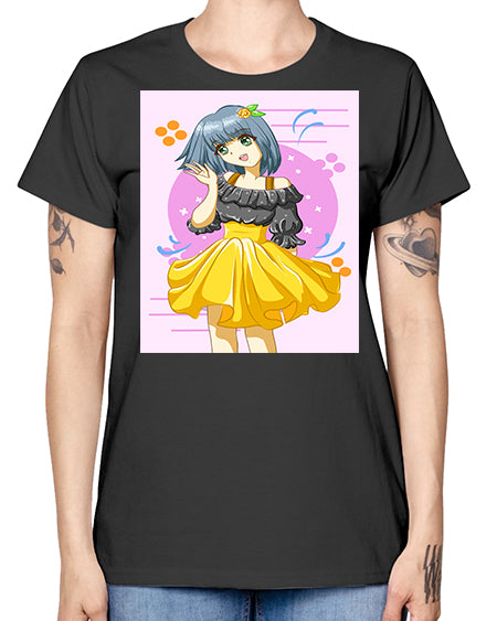 Happy and funny girl with black yellow dress in summer 41# - anime - Missy T-Shirt