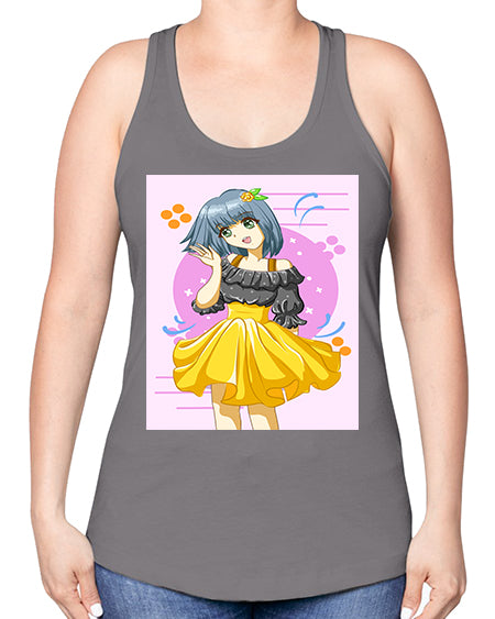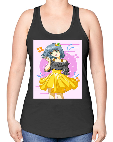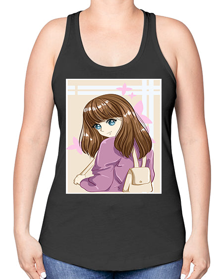 Happy and pretty college student carrying a bag 102# - anime -Racerback Tank