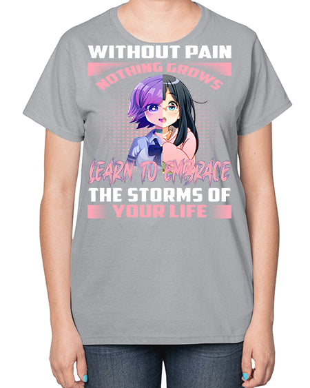 without pain nothing grows learn to embrace the storms of your life288# - anime- Ladies T-Shirt