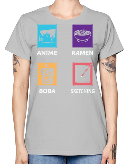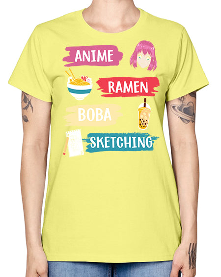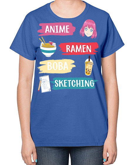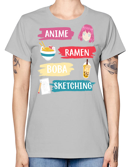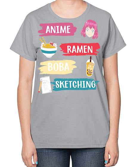 Anime Ramen Boba Sketching Anime 218# - anime- Ladies T-Shirt