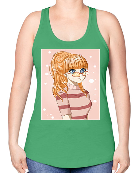 Beautiful and cool girl orange hair with glasses 105# - anime -Racerback Tank