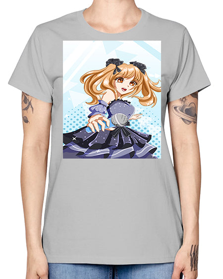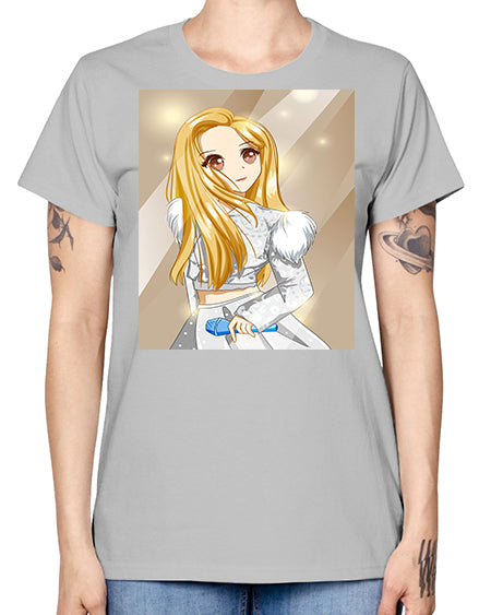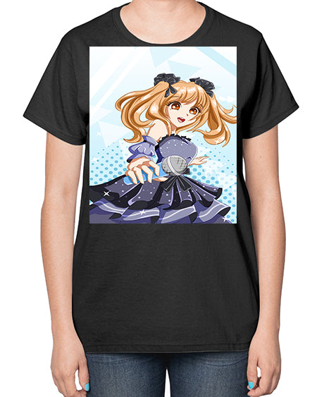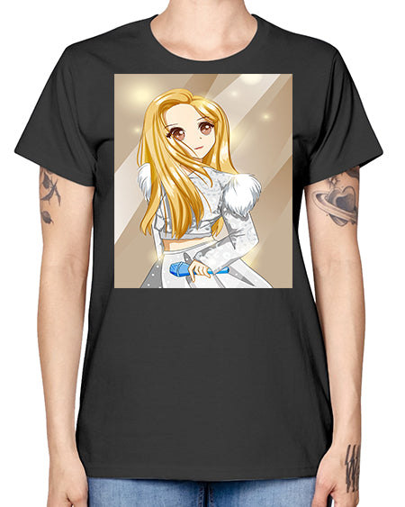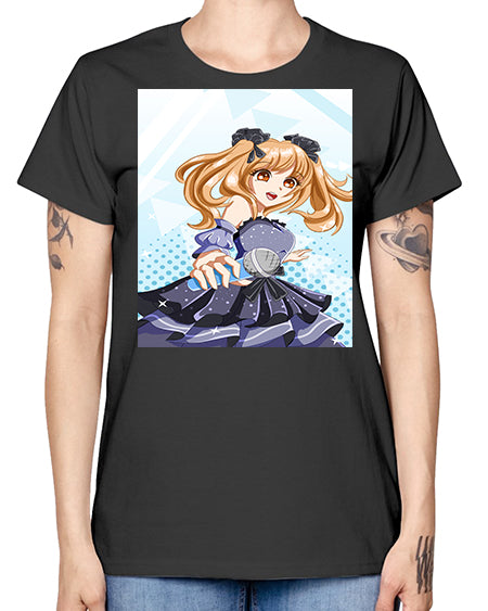 Beautiful singer girl with black dress 19# - anime- Ladies T-Shirt