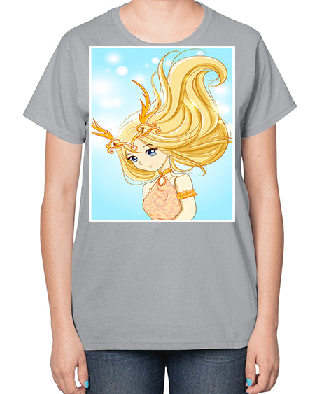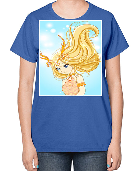 Beautiful queen with gold hair and gold horn crown 39# - anime- Ladies T-Shirt