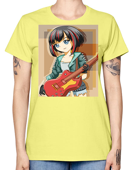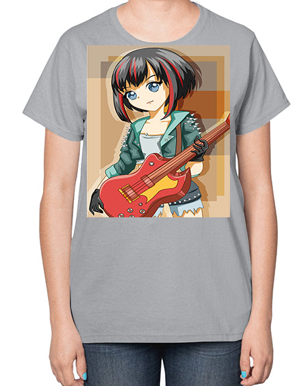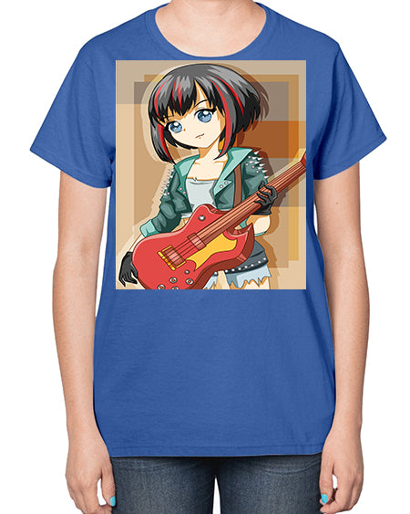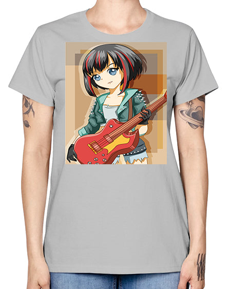 Beautiful rock girl with bass guitar perform 173# - anime- Ladies T-Shirt