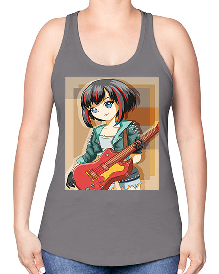Beautiful rock girl with bass guitar perform 173# - anime -Racerback Tank