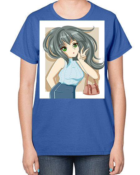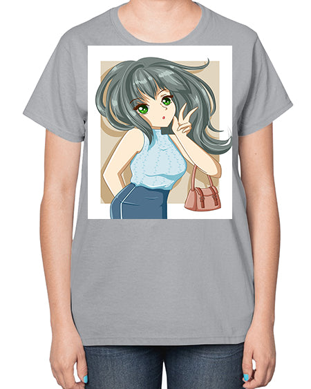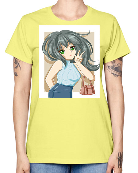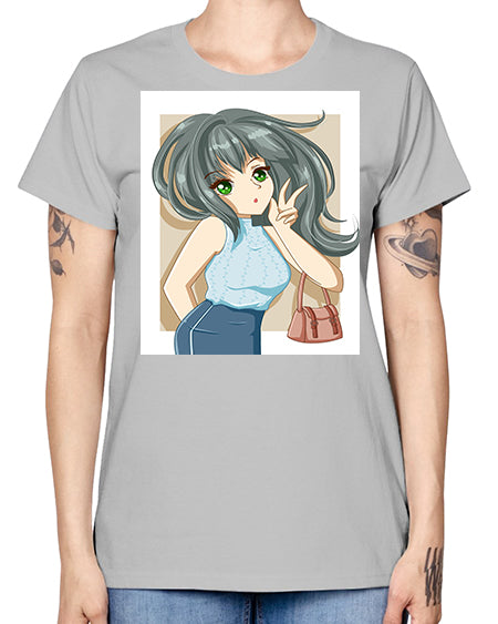 Cool and beautiful girl carry a fashion bag 96# - anime- Ladies T-Shirt