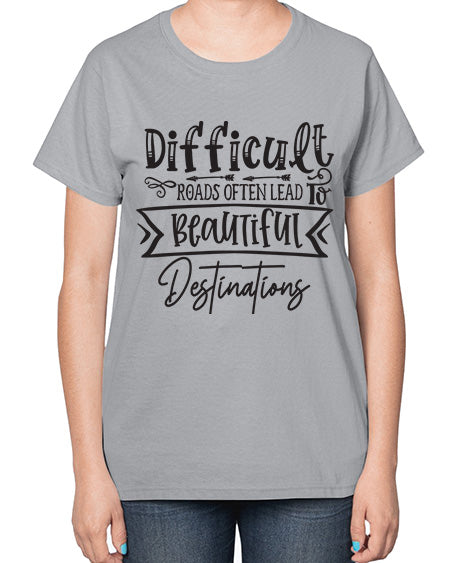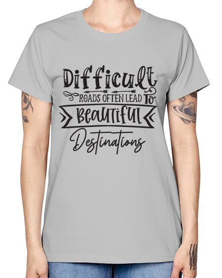 Difficult Roads Often Lead To Beautiful Destinations Style 130# - motivation- Ladies T-Shirt