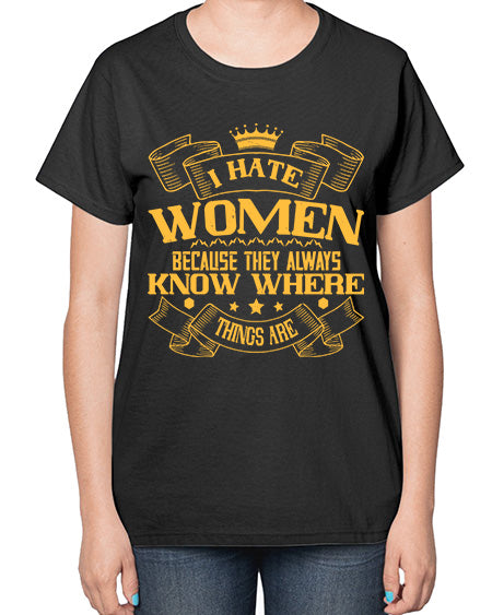 I hate women because they always know where things are Style 57# - womens day- Ladies T-Shirt