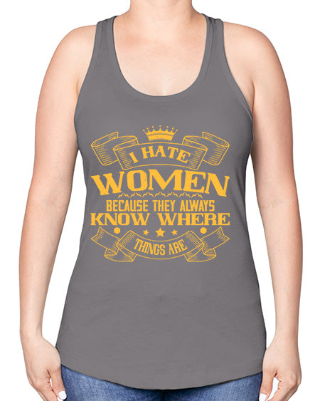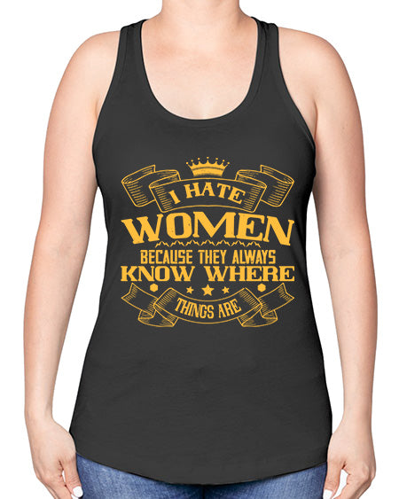I hate women because they always know where things are Style 57# - womens day -Racerback Tank