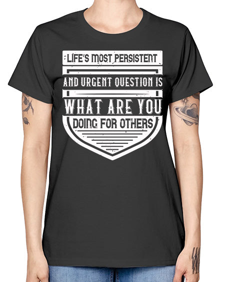 Life’s most persistent and urgent question is what are you doing for others Style 41# - volunteer- Ladies T-Shirt
