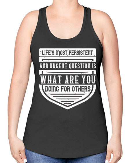 Life’s most persistent and urgent question is what are you doing for others Style 41# - volunteer -Racerback Tank