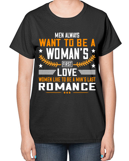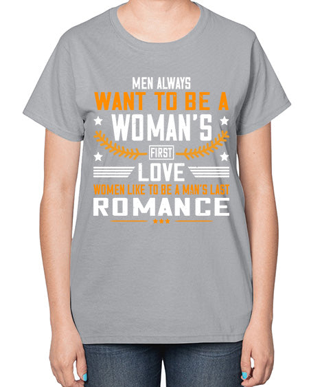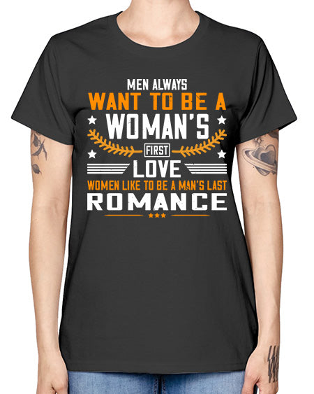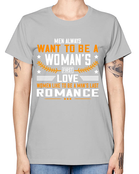 Men always want to be a womans first love women like to be a mans last romance Style 49# - womens day- Ladies T-Shirt