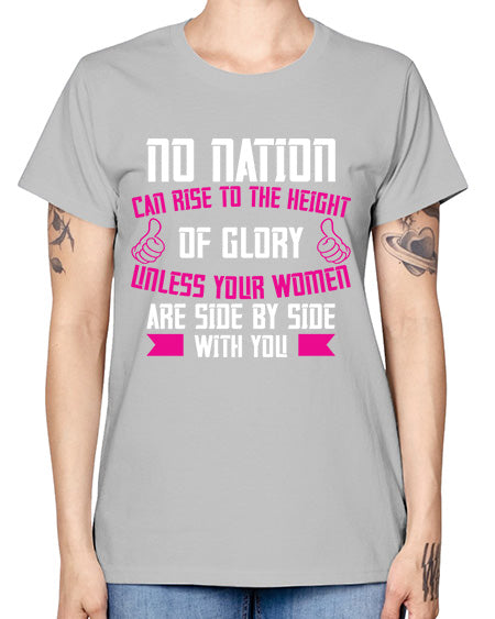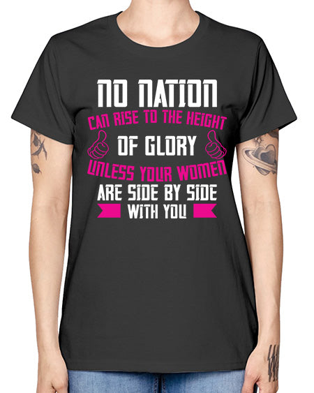 No nation can rise to the height of glory unless your women are side by side with you Style 47# - womens day- Ladies T-Shirt