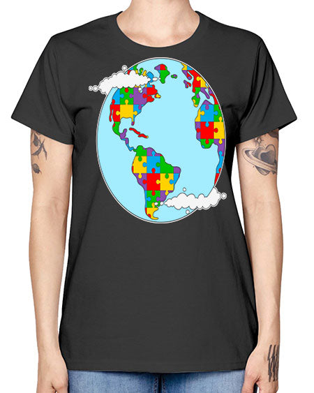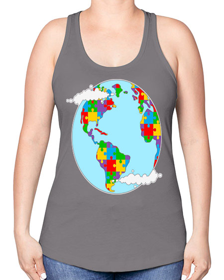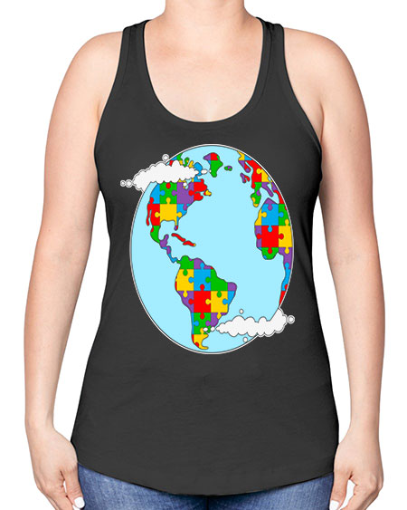 earth autism awareness heart puzzle 83# - autism -Racerback Tank
