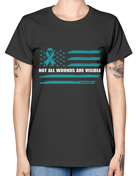 PTSD Awareness Not All Wounds 19# - PTSD- Ladies T-Shirt
