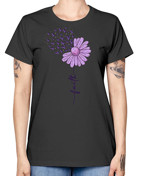 Purple Daisy Faith AlzheimerS Awareness 209# - alzheimers- Ladies T-Shirt