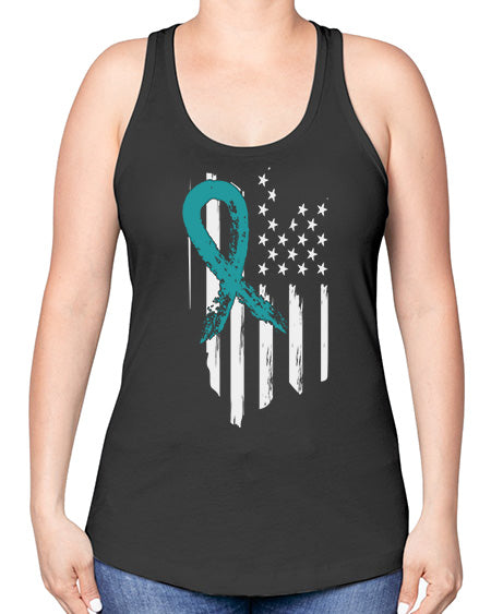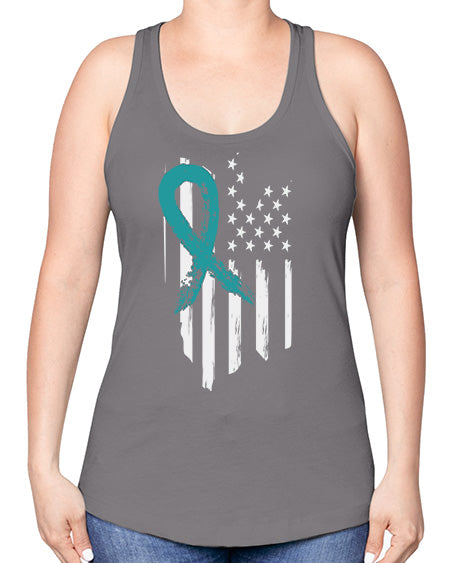 PTSD Teal Ribbon Distressed US 7# - PTSD -Racerback Tank