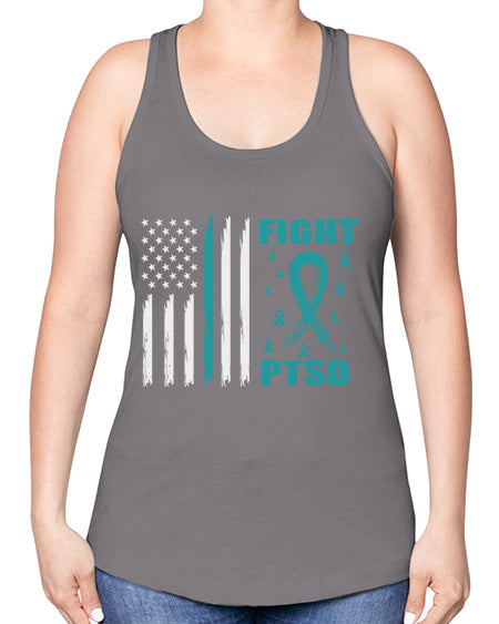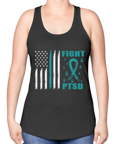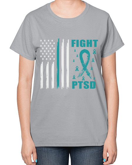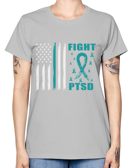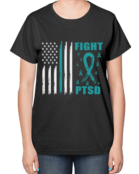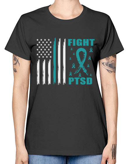 Fight PTSD Awareness American Flag 24# - PTSD- Ladies T-Shirt
