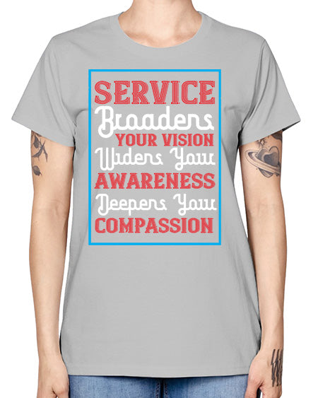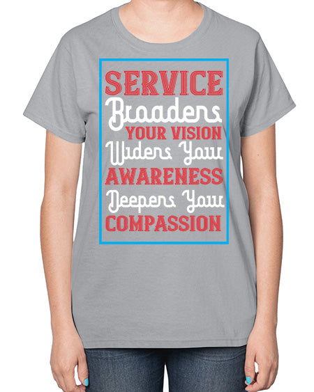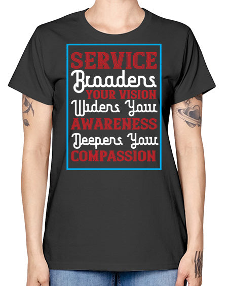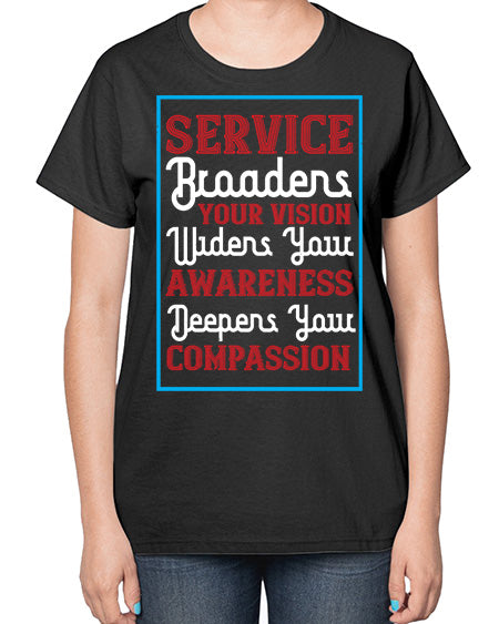 Service broadens your vision widens your awareness Deepens your compassion Style 31# - Self awareness- Ladies T-Shirt