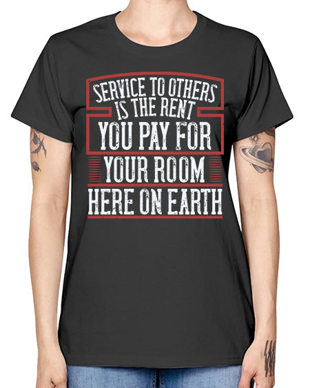 Service to others is the rent you pay for your room here on earth Style 29# - volunteer- Ladies T-Shirt