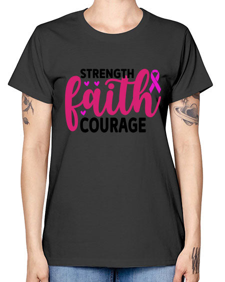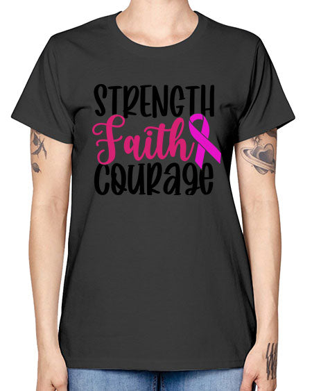Strength Faith Courage 7# - breast cancer- Ladies T-Shirt