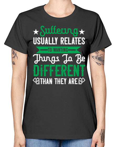 Suffering usually relates to wanting things to be different than they are Style 29# - Self awareness - Missy T-Shirt
