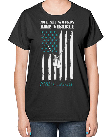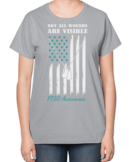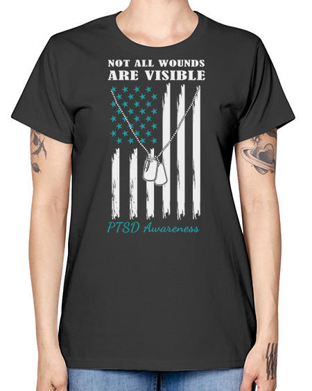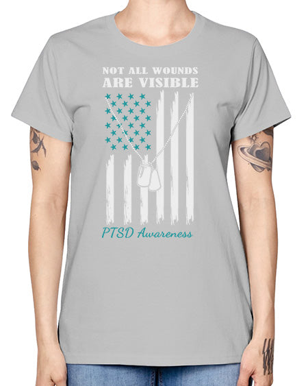 Teal Ribbon Not All Wounds 6# - PTSD- Ladies T-Shirt