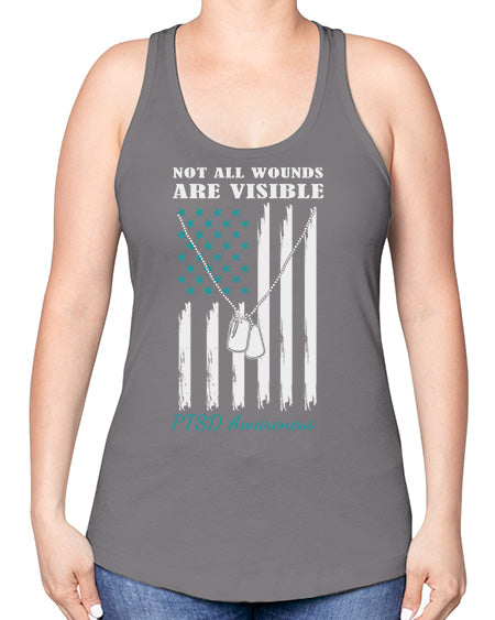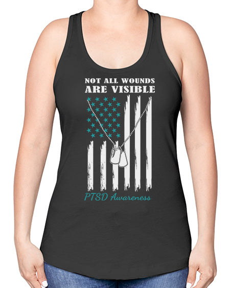 Teal Ribbon Not All Wounds 6# - PTSD -Racerback Tank