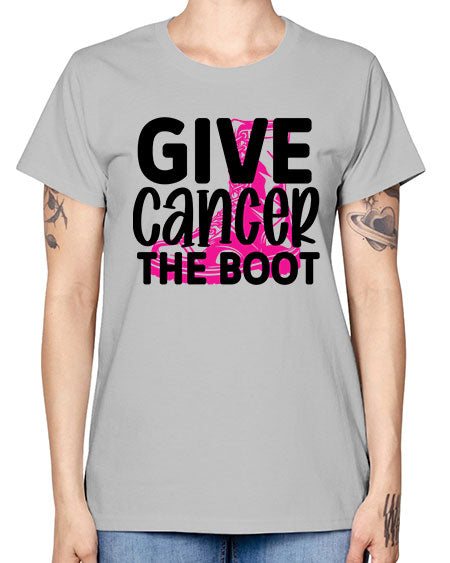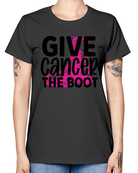 Give Cancer the Boot 25# - breast cancer- Ladies T-Shirt