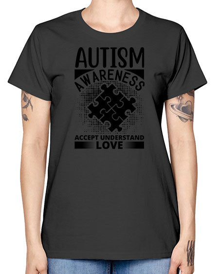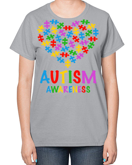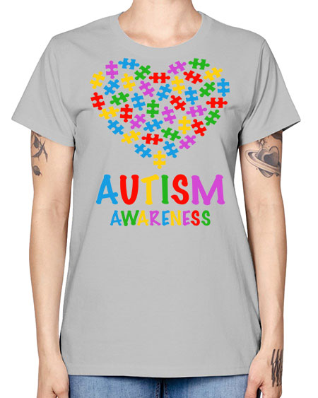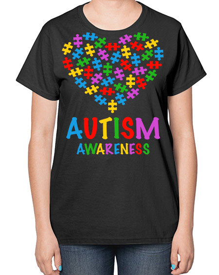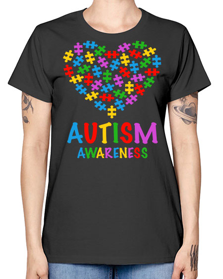 autism awareness heart love puzzle 15# - autism- Ladies T-Shirt
