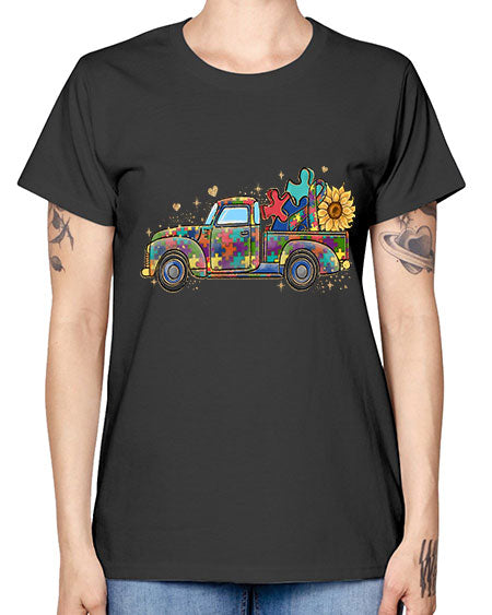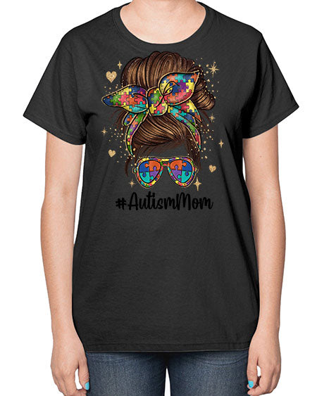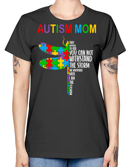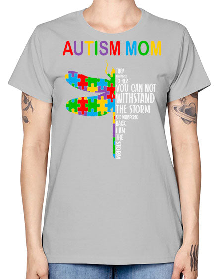 autism mom dragonfly puzzle pieces 47# - autism- Ladies T-Shirt