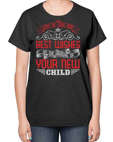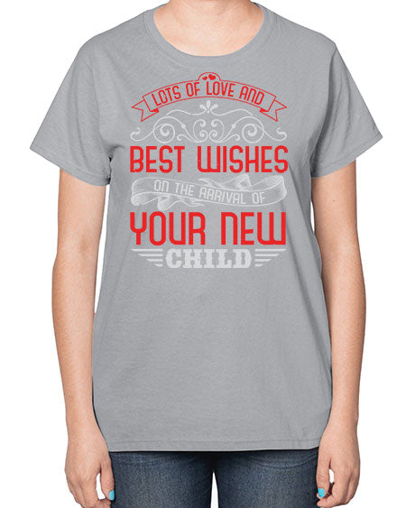 Lots of loe and best wishes Style 145# - baby shower- Ladies T-Shirt