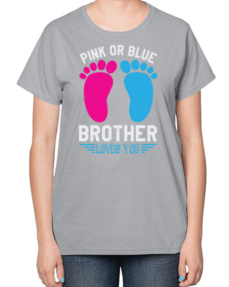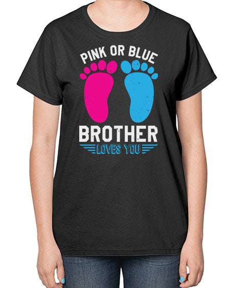 Pink or Blue brother loves you Style 185# - baby shower- Ladies T-Shirt