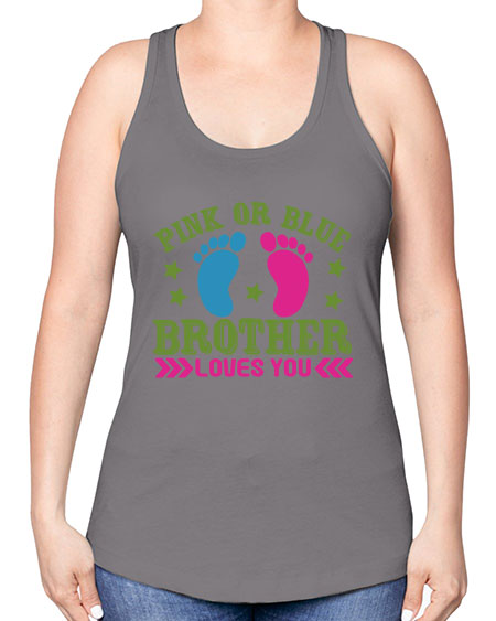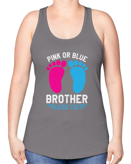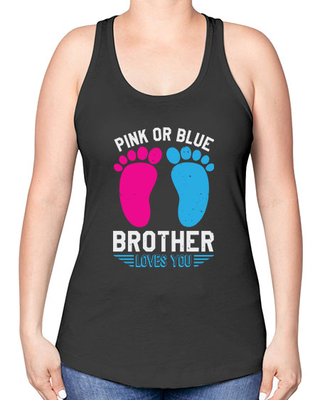 Pink or Blue brother loves you Style 185# - baby shower -Racerback Tank