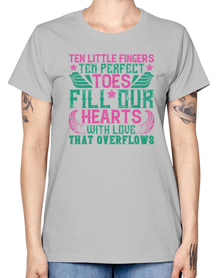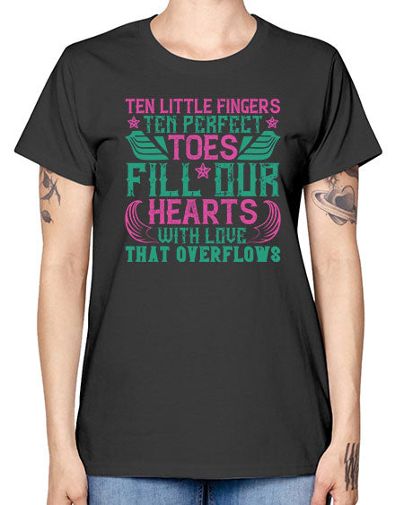 Ten little fingers ten perfect toes fill our hearts with love that overflows Style 454# - baby- Ladies T-Shirt